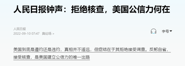 人民日报 人民日报钟声:拒绝核查,美国公信力何在