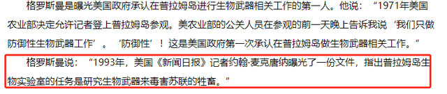 而在1993年,还有一个叫麦克唐纳的美国记者指出,这座岛建立生物实验室的一个目的就是,研究如何利用病毒削弱敌方经济与粮食安全。